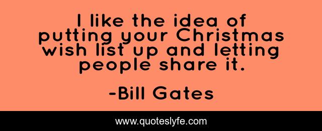 This page presents the quote "I like the idea of putting your Christmas wish list up and letting people share it.". Author of this quote is Bill Gates. This quote is about wish, idea, people,.