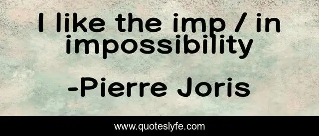 "Pierre Joris Quotes." Quoteslyfe.com, 2025. Fri. 05 Dec. 2025. <https://www.quoteslyfe.com/quote/I-like-the-imp-in-impossibility-25399>.