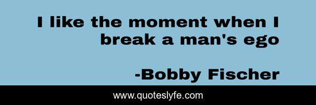 This page presents the quote "I like the moment when I break a man's ego". Author of this quote is Bobby Fischer. This quote is about bobby, ego, fischer, chess,.