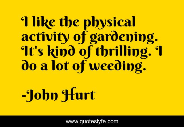 This page presents the quote "I like the physical activity of gardening. It's kind of thrilling. I do a lot of weeding.". Author of this quote is John Hurt. This quote is about kind, like, activity,.