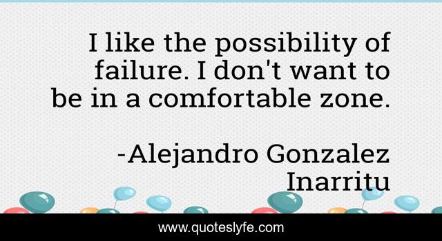 This page presents the quote "I like the possibility of failure. I don't want to be in a comfortable zone.". Author of this quote is Alejandro Gonzalez Inarritu. This quote is about like, comfortable,.