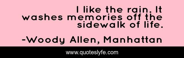 "Woody Allen, Manhattan Quotes." Quoteslyfe.com, 2025. Sun. 07 Dec. 2025. <https://www.quoteslyfe.com/quote/I-like-the-rain-It-washes-memories-205769>.