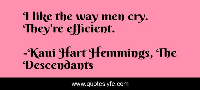 This page presents the quote "I like the way men cry. They're efficient.". Author of this quote is Kaui Hart Hemmings, The Descendants. This quote is about cry, men,.