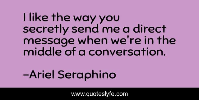 This page presents the quote "I like the way you secretly send me a direct message when we're in the middle of a conversation.". Author of this quote is Ariel Seraphino. This quote is about conversation, message, twitter,.