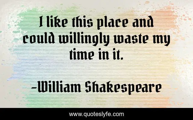 This page presents the quote "I like this place and could willingly waste my time in it.". Author of this quote is William Shakespeare. This quote is about celia, poetry, as-you-like-it, nature,.