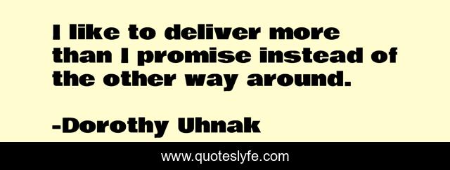 This page presents the quote "I like to deliver more than I promise instead of the other way around.". Author of this quote is Dorothy Uhnak. This quote is about going, getting,.