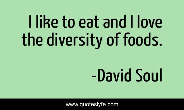 This page presents the quote "I like to eat and I love the diversity of foods.". Author of this quote is David Soul. This quote is about love, diversity, like, affection,.