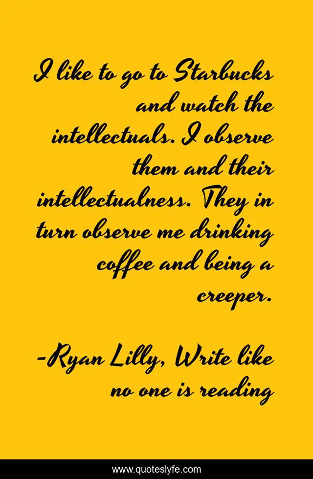 "Ryan Lilly, Write like no one is reading Quotes." Quoteslyfe.com, 2025. Sat. 06 Dec. 2025. <https://www.quoteslyfe.com/quote/I-like-to-go-to-Starbucks-and-217357>.