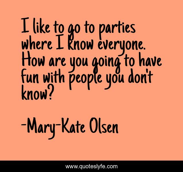 This page presents the quote "I like to go to parties where I know everyone. How are you going to have fun with people you don't know?". Author of this quote is Mary-Kate Olsen. This quote is about fun, people,.