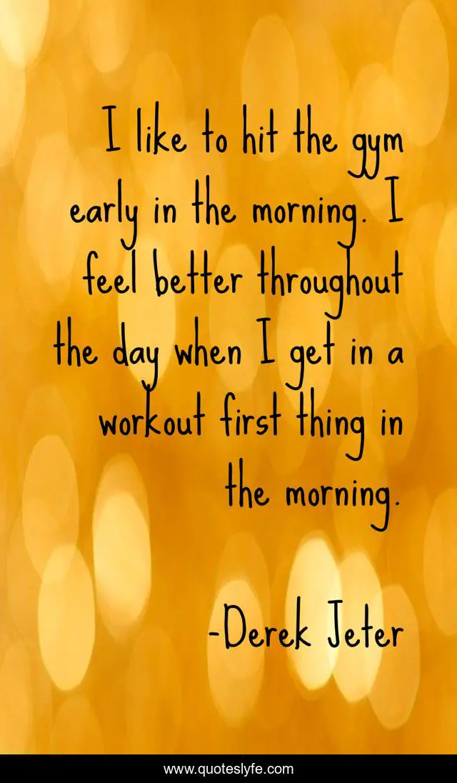This page presents the quote "I like to hit the gym early in the morning. I feel better throughout the day when I get in a workout first thing in the morning.". Author of this quote is Derek Jeter. This quote is about better, early, day,.