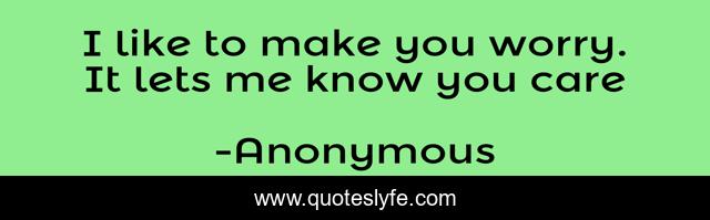 This page presents the quote "I like to make you worry. It lets me know you care". Author of this quote is Anonymous. This quote is about caring, enthusiasm, worrying, inspirational, loving,.