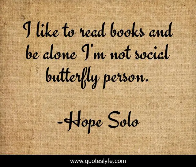 This page presents the quote "I like to read books and be alone I'm not social butterfly person.". Author of this quote is Hope Solo. This quote is about butterfly, person, social,.