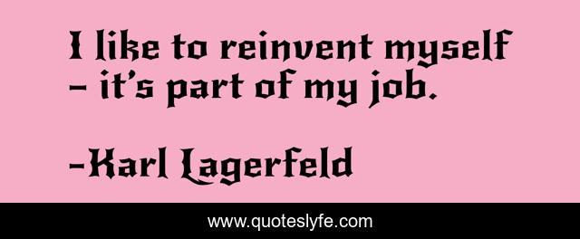 This page presents the quote "I like to reinvent myself — it’s part of my job.". Author of this quote is Karl Lagerfeld. This quote is about myself, fashion, reinvent, create, creation, karl-lagerfeld, invent, job, designer,.