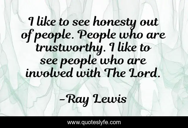 This page presents the quote "I like to see honesty out of people. People who are trustworthy. I like to see people who are involved with The Lord.". Author of this quote is Ray Lewis. This quote is about see, honesty, people,.