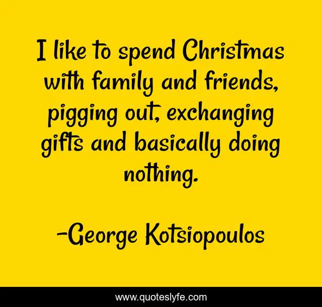 This page presents the quote "I like to spend Christmas with family and friends, pigging out, exchanging gifts and basically doing nothing.". Author of this quote is George Kotsiopoulos. This quote is about friends, family,.