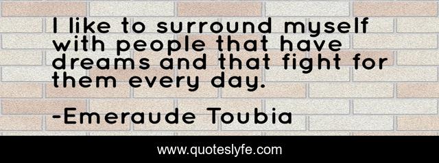 This page presents the quote "I like to surround myself with people that have dreams and that fight for them every day.". Author of this quote is Emeraude Toubia. This quote is about myself, day, fight,.