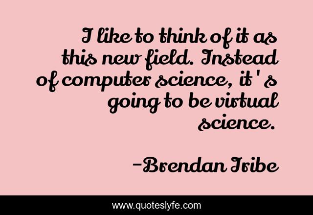 This page presents the quote "I like to think of it as this new field. Instead of computer science, it's going to be virtual science.". Author of this quote is Brendan Iribe. This quote is about new, computer science, think,.