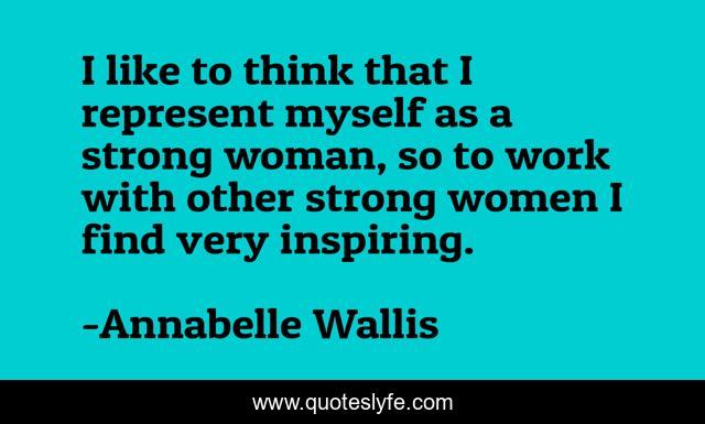 This page presents the quote "I like to think that I represent myself as a strong woman, so to work with other strong women I find very inspiring.". Author of this quote is Annabelle Wallis. This quote is about myself, work, strong,.