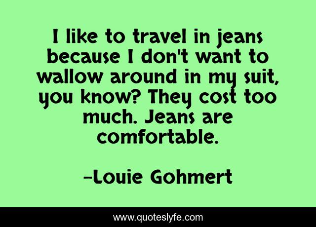 This page presents the quote "I like to travel in jeans because I don't want to wallow around in my suit, you know? They cost too much. Jeans are comfortable.". Author of this quote is Louie Gohmert. .