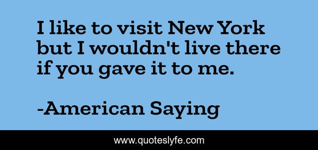 "American Saying Quotes." Quoteslyfe.com, 2025. Mon. 08 Dec. 2025. <https://www.quoteslyfe.com/quote/I-like-to-visit-New-York-but-271420>.