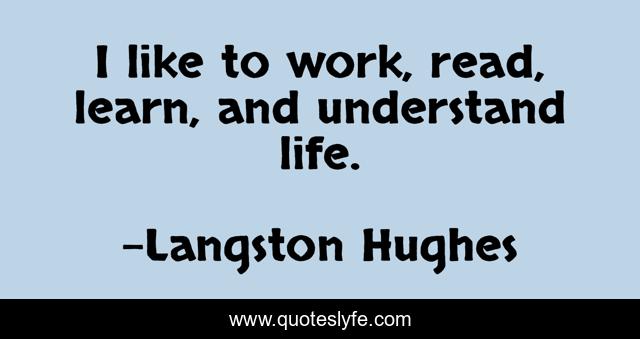 This page presents the quote "I like to work, read, learn, and understand life.". Author of this quote is Langston Hughes. .