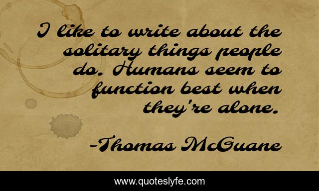 This page presents the quote "I like to write about the solitary things people do. Humans seem to function best when they're alone.". Author of this quote is Thomas McGuane. This quote is about like, best, people,.