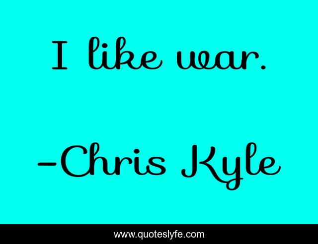 "Chris Kyle Quotes." Quoteslyfe.com, 2025. Sun. 07 Dec. 2025. <https://www.quoteslyfe.com/quote/I-like-war-286074>.