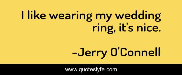 This page presents the quote "I like wearing my wedding ring, it's nice.". Author of this quote is Jerry O'Connell. This quote is about ring, like, nice,.