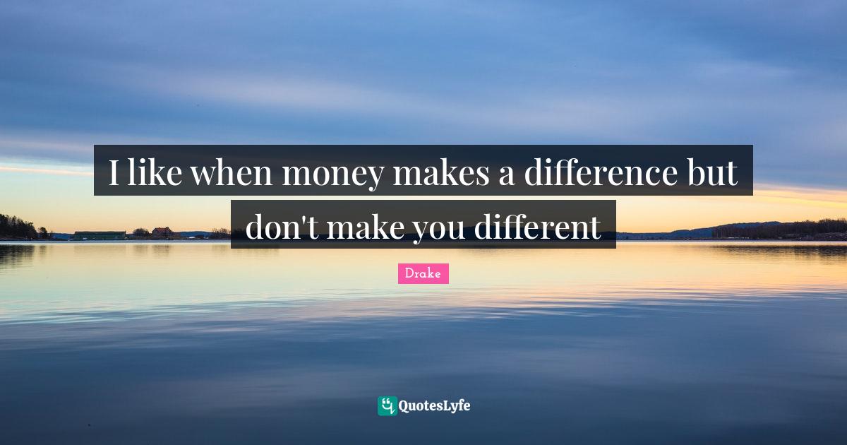 This page presents the quote "I like when money makes a difference but don't make you different". Author of this quote is Drake. This quote is about making a difference, humble, differences, money, different,.