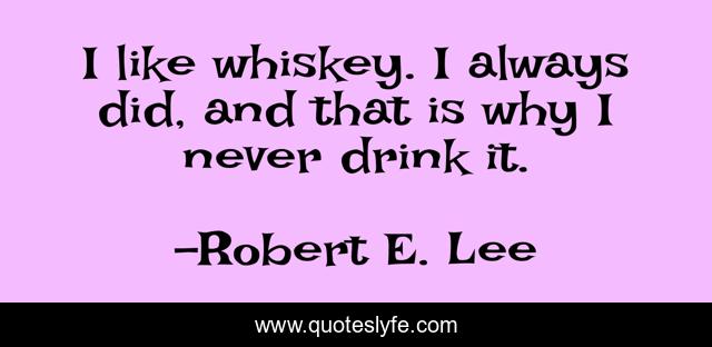 This page presents the quote "I like whiskey. I always did, and that is why I never drink it.". Author of this quote is Robert E. Lee. This quote is about drinking, abstemiousness,.