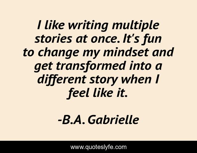 This page presents the quote "I like writing multiple stories at once. It's fun to change my mindset and get transformed into a different story when I feel like it.". Author of this quote is B.A. Gabrielle. .