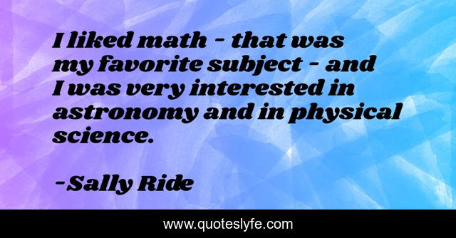 This page presents the quote "I liked math - that was my favorite subject - and I was very interested in astronomy and in physical science.". Author of this quote is Sally Ride. This quote is about astronomy, favorite, math,.