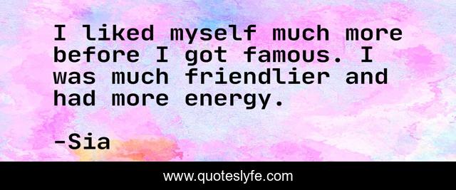 This page presents the quote "I liked myself much more before I got famous. I was much friendlier and had more energy.". Author of this quote is Sia. This quote is about myself, energy, before,.