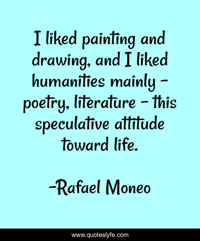 This page presents the quote "I liked painting and drawing, and I liked humanities mainly - poetry, literature - this speculative attitude toward life.". Author of this quote is Rafael Moneo. This quote is about life, painting, poetry,.