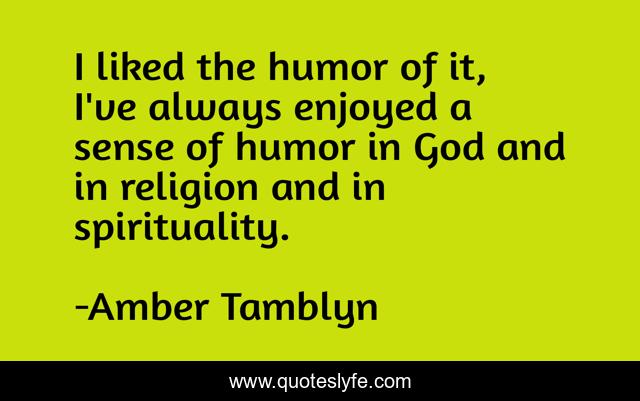 This page presents the quote "I liked the humor of it, I've always enjoyed a sense of humor in God and in religion and in spirituality.". Author of this quote is Amber Tamblyn. This quote is about god, religion,.