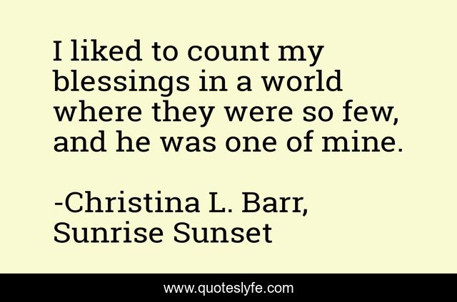"Christina L. Barr, Sunrise Sunset Quotes." Quoteslyfe.com, 2025. Fri. 05 Dec. 2025. <https://www.quoteslyfe.com/quote/I-liked-to-count-my-blessings-in-148797>.