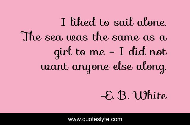 This page presents the quote "I liked to sail alone. The sea was the same as a girl to me - I did not want anyone else along.". Author of this quote is E. B. White. .