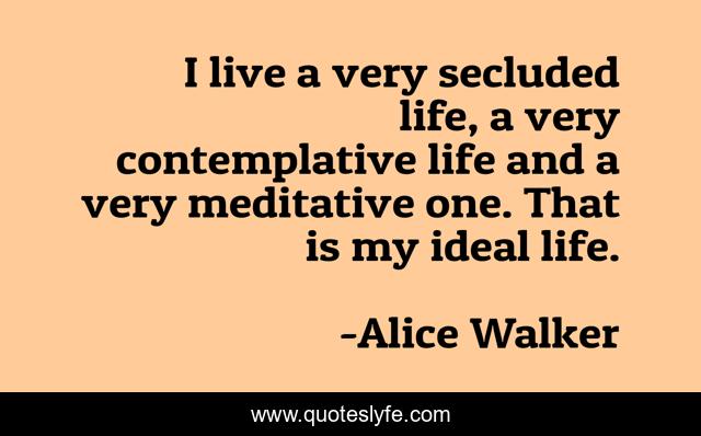 This page presents the quote "I live a very secluded life, a very contemplative life and a very meditative one. That is my ideal life.". Author of this quote is Alice Walker. This quote is about life, life-and-living,.