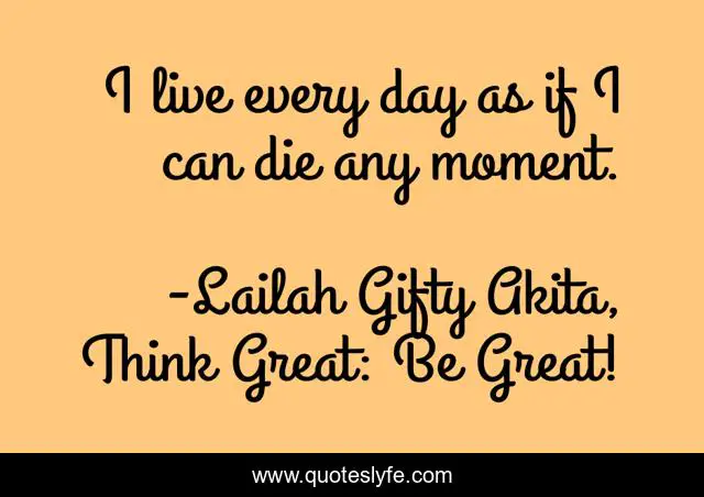"Lailah Gifty Akita, Think Great: Be Great! Quotes." Quoteslyfe.com, 2025. Fri. 05 Dec. 2025. <https://www.quoteslyfe.com/quote/I-live-every-day-as-if-I-111254>.
