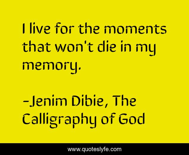 This page presents the quote "I live for the moments that won't die in my memory.". Author of this quote is Jenim Dibie, The Calligraphy of God. This quote is about living, life, death, love, moments, die, time, timeless, memories,.