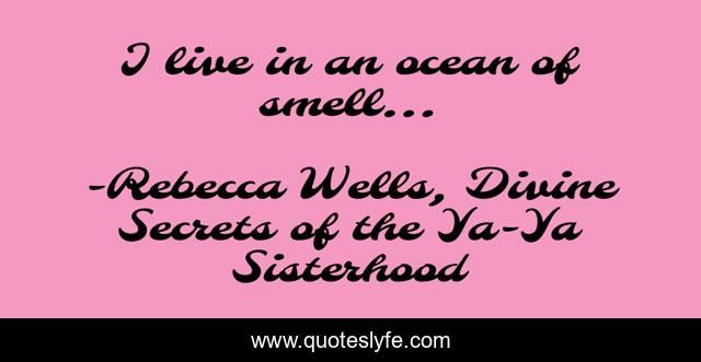 "Rebecca Wells, Divine Secrets of the Ya-Ya Sisterhood Quotes." Quoteslyfe.com, 2025. Fri. 05 Dec. 2025. <https://www.quoteslyfe.com/quote/I-live-in-an-ocean-of-smell-72357>.