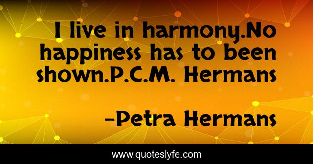 "Petra Hermans Quotes." Quoteslyfe.com, 2025. Mon. 08 Dec. 2025. <https://www.quoteslyfe.com/quote/I-live-in-harmony-No-happiness-has-240937>.