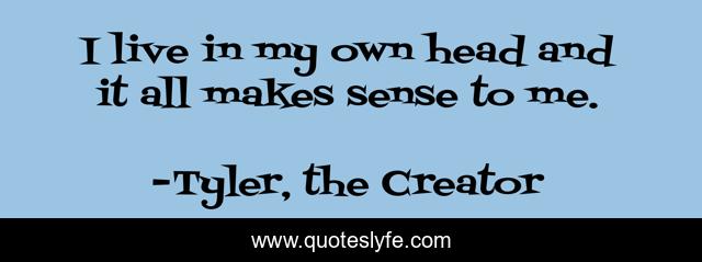 This page presents the quote "I live in my own head and it all makes sense to me.". Author of this quote is Tyler, the Creator. This quote is about psyche, imagination, rappers, tyler, the-creator,.