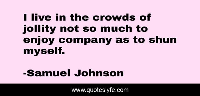 This page presents the quote "I live in the crowds of jollity not so much to enjoy company as to shun myself.". Author of this quote is Samuel Johnson. This quote is about self, knowledge,.