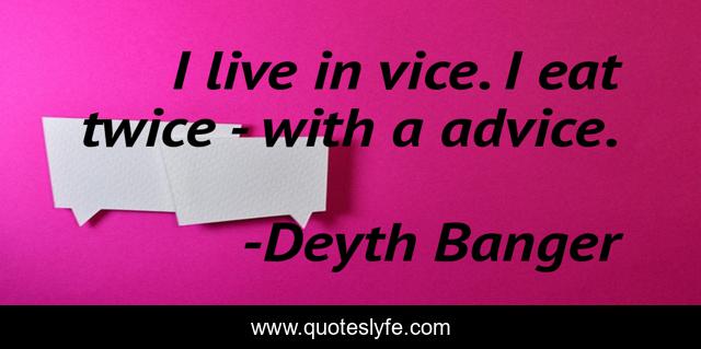 This page presents the quote "I live in vice. I eat twice - with a advice.". Author of this quote is Deyth Banger. This quote is about advice, vice, with, live, eat,.