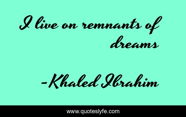"Khaled Ibrahim Quotes." Quoteslyfe.com, 2025. Fri. 05 Dec. 2025. <https://www.quoteslyfe.com/quote/I-live-on-remnants-of-dreams-23694>.