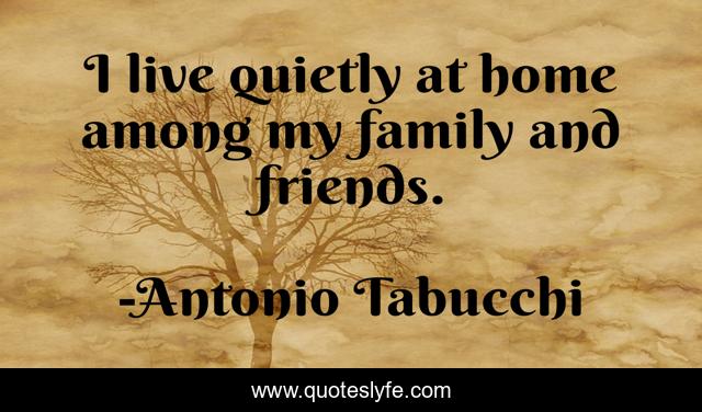This page presents the quote "I live quietly at home among my family and friends.". Author of this quote is Antonio Tabucchi. This quote is about home, live, friends,.