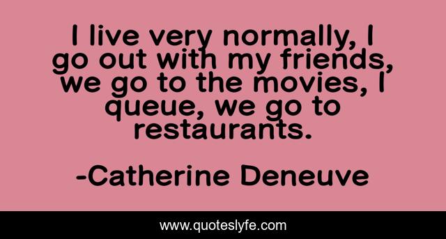 This page presents the quote "I live very normally, I go out with my friends, we go to the movies, I queue, we go to restaurants.". Author of this quote is Catherine Deneuve. This quote is about simple, live,.