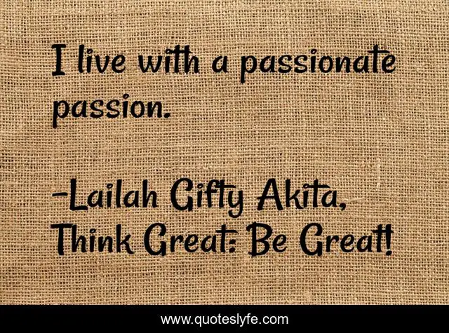 "Lailah Gifty Akita, Think Great: Be Great! Quotes." Quoteslyfe.com, 2025. Sat. 06 Dec. 2025. <https://www.quoteslyfe.com/quote/I-live-with-a-passionate-passion-62540>.