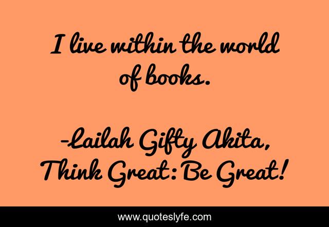 "Lailah Gifty Akita, Think Great: Be Great! Quotes." Quoteslyfe.com, 2025. Mon. 08 Dec. 2025. <https://www.quoteslyfe.com/quote/I-live-within-the-world-of-books-117010>.